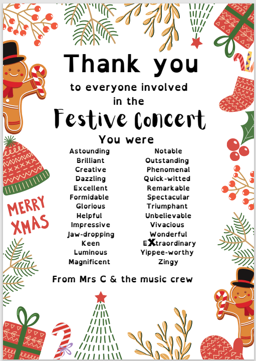 A huge well done to all of our children who performed in the Festive Concert on Monday evening. You are all superstars!